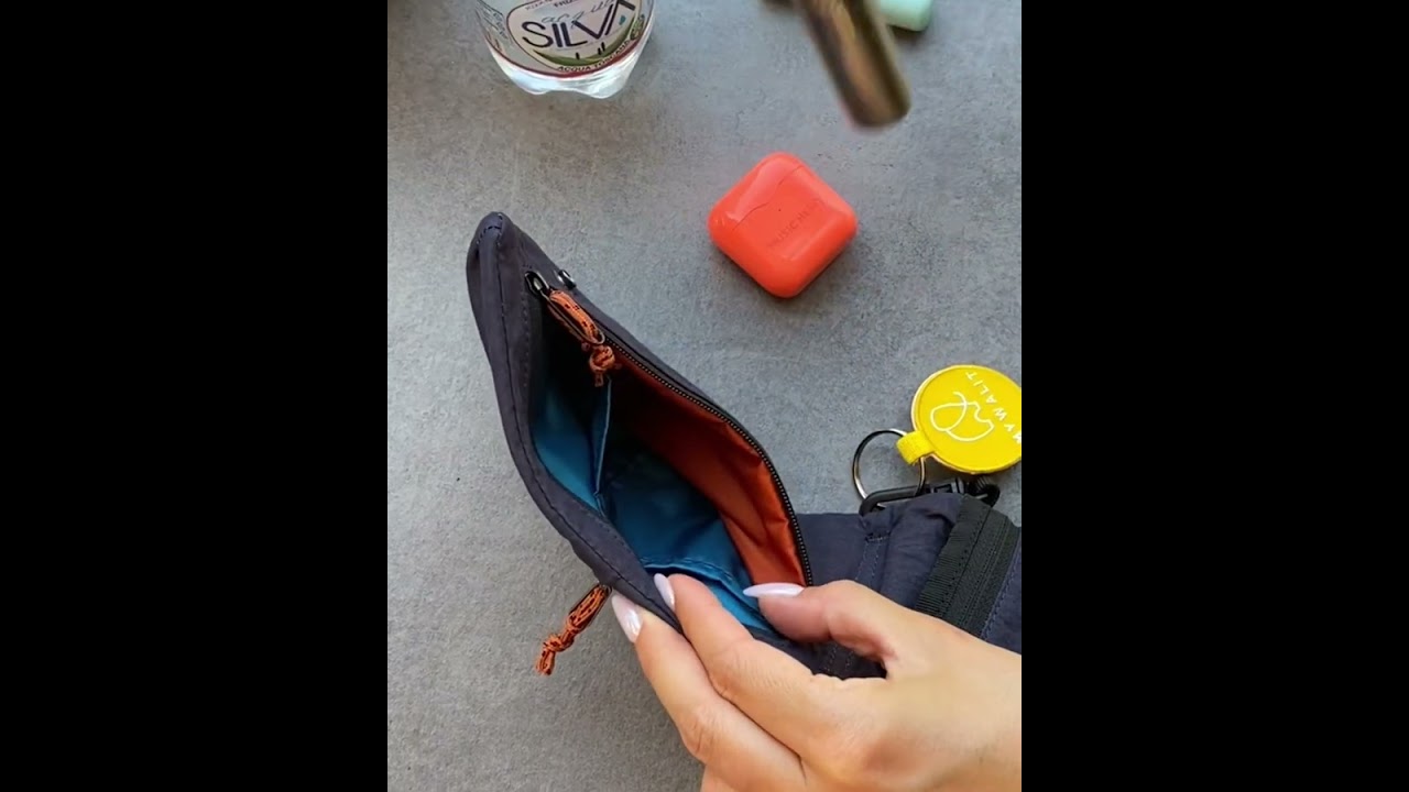 Fold. Fasten. Go. This slim, unisex organiser is made for life in motion, from daily commutes to weekend escapes. Crafted from lightweight nylon-cotton, it folds flat and secures with a popper for easy crossbody wear. Inside, two zipped compartments and card slots keep essentials in order. Two outer zip pockets and a slip pocket with flap add quick-access storage. Low-fuss, practical, ready for wherever the day takes you.